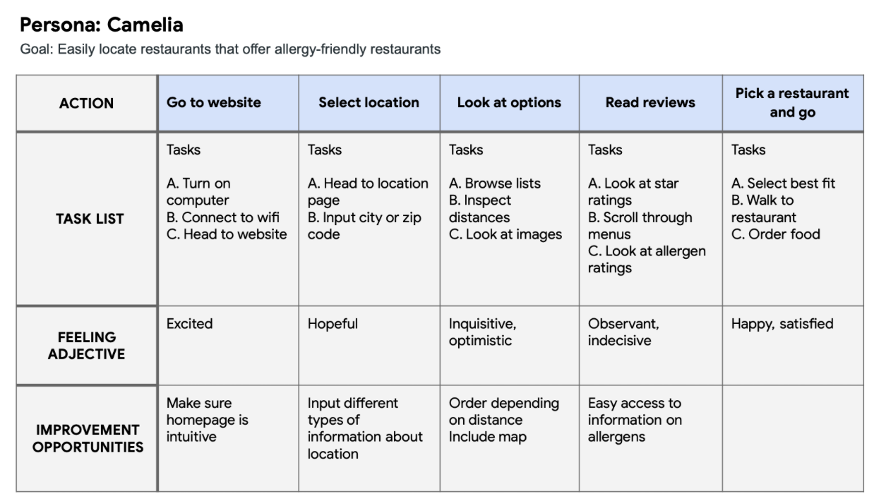 Problem statement: Camelia is a traveling freelance designer who needs a solution that provides easy access to healthy, natural, and allergen-free meal options while traveling because she has several food intolerances and wants maintain her diet.